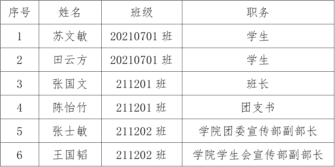 为了认真贯彻党的发展党员工作方针,充分发扬民主,增加发展党员工作的透明度,把好发展党员质量关,确保新党员质量,现将预备期满拟转正的中共预备党员在全院范围内公示。公示时间为5个工作日(2024年6月14日至2024年6月20日)。在公示期内,党内外群众如对拟转正的中共预备党员有意见,请以真实单位、姓名,用书面、电话等形式如实反映情况。群众反映的问题可受到法律保护,我们将严格保密。受理党内外群众意见的本学院党委办公室电话号码是:0431--85176956;学校党委组织部办公室电话号码是:0431--85716215。