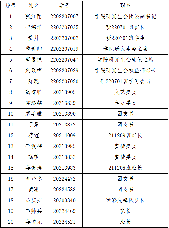 发展对象名单如下:
