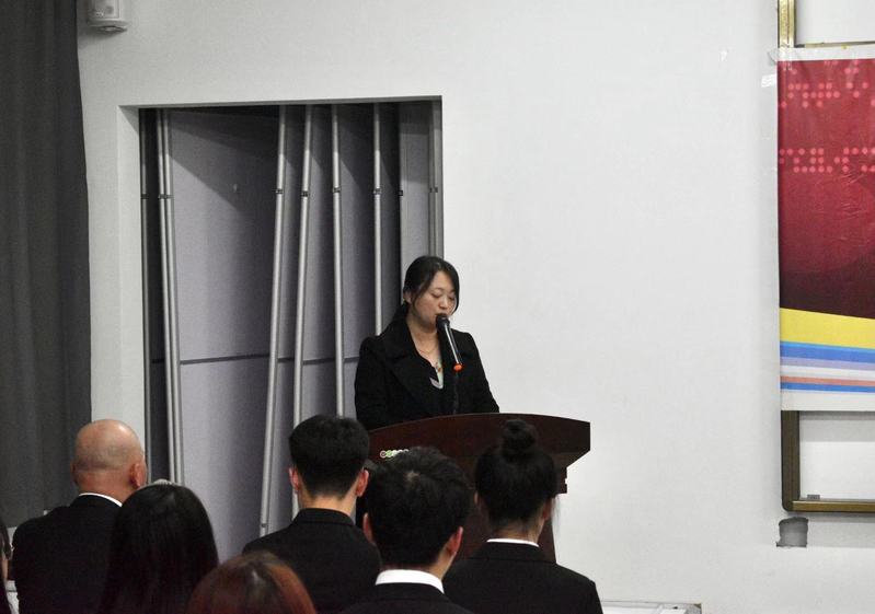大会第五项:学院第十九届学生会执行主席王希宇作工作展望,同时希望新的主席团成员能够“在其位、谋其政、担其责”,并通过携手合作,把团委和学生会的工作做好。