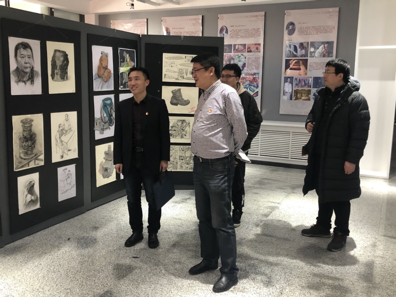 活动结束后,王静一行在杨峰的陪同下,参观了一楼“发现美、感受美、创造美”艺术展,王静一行对学院艺术展作品给与了很高的评价,并希望学院将优秀的资源分享给公司,将优秀的人才推荐给公司。双方表示,要以支部共建为起点,推进校企党建互动、互融、共进,努力取得“不忘初心,牢记使命”主题教育的新成效。