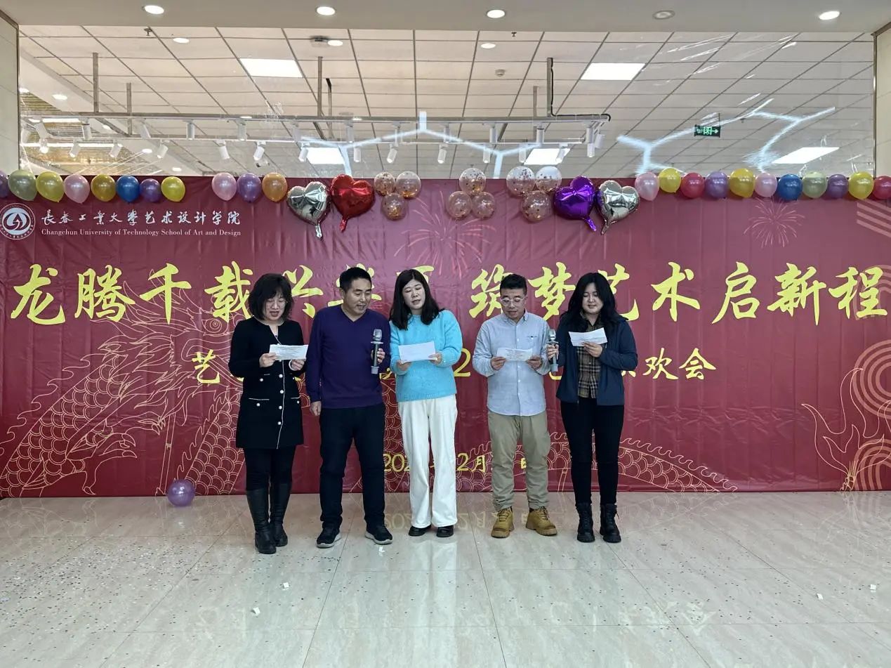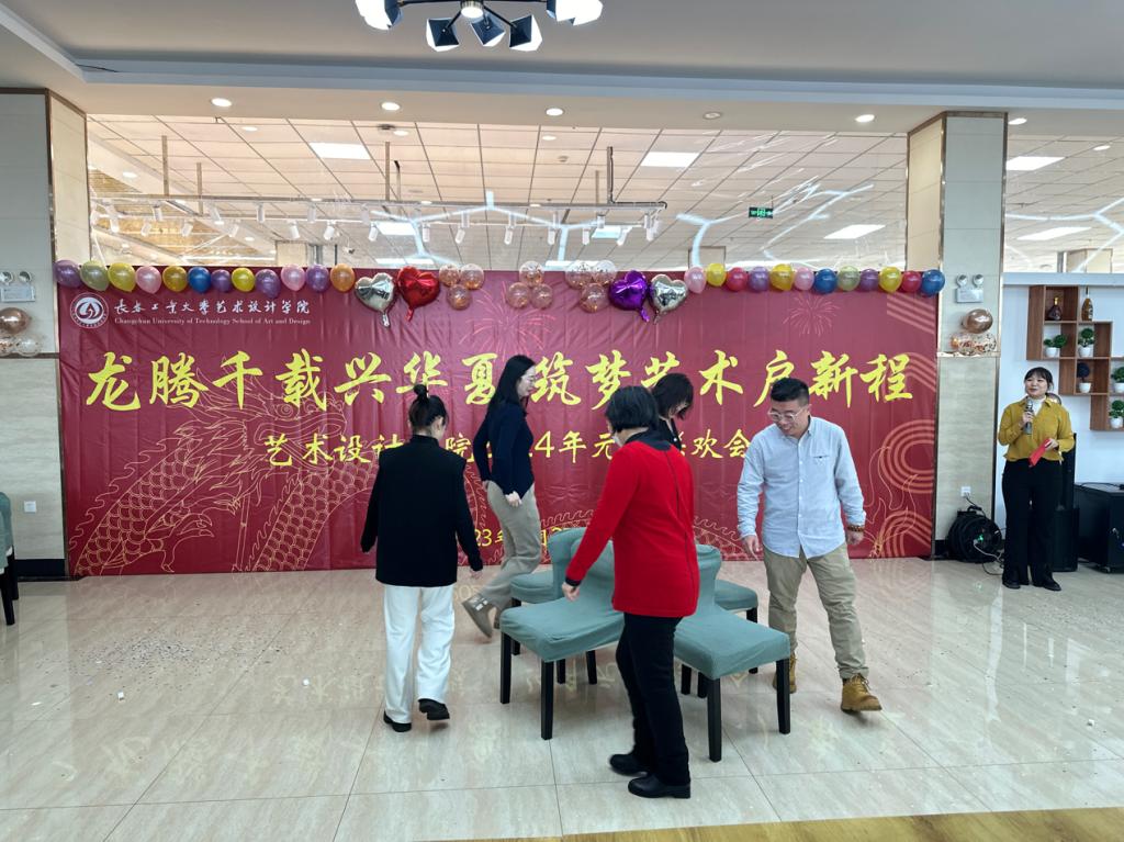 于12月27日举行了“龙腾千载兴华夏,筑梦艺术启新程——2024年元旦联欢会”,学院领导以及学院四个系、一个中心、两个办公室的教师欢聚一堂,同庆佳节。
