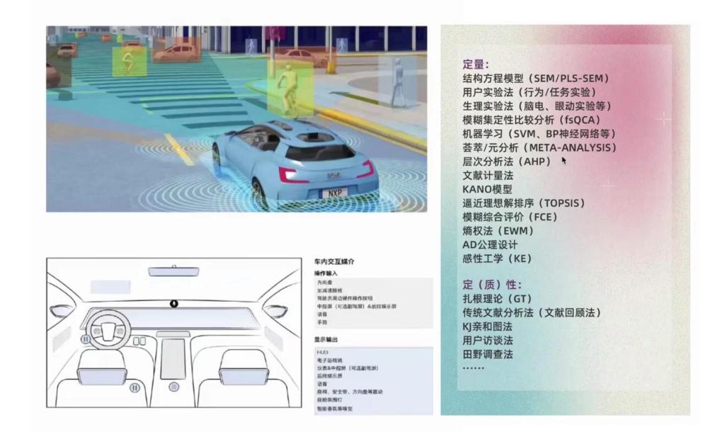 陈永康博士带来的是“智能座舱HMI设计中的人因及认知研究”学术分享,首先向师生们介绍了智能座舱人机交互的复杂性及相关人因与认知研究。其次,结合案例向同学们介绍了设计中的定性及定量研究方法,包括结构方程模型、KANO模型、层次分析法等。在互动环节,陈博士针对师生们的提问进行了认真的回答,并给同学们提出了学习建议。