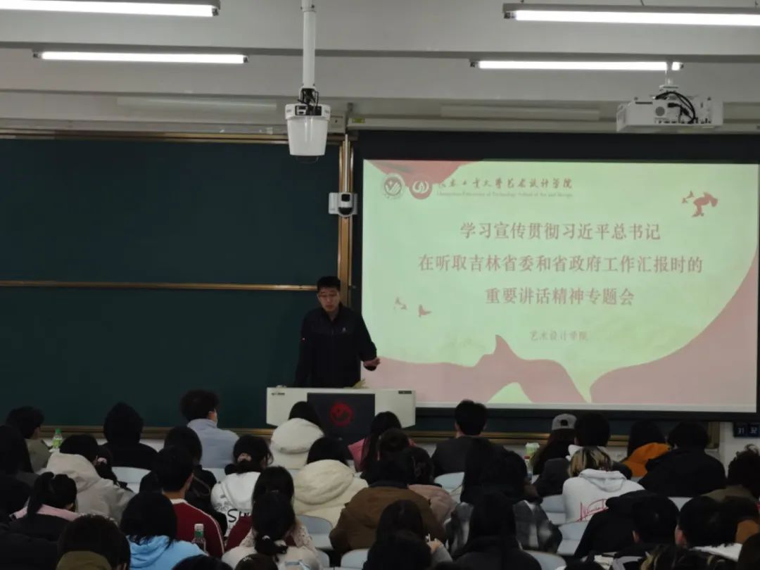 学院党委高度重视,要求各年级辅导员以年级会形式开展集中宣讲,结合专业特色解读“新时代东北全面振兴”战略。将课程作业与吉林文旅IP设计、非遗活化项目结合,用设计语言讲好东北振兴故事。