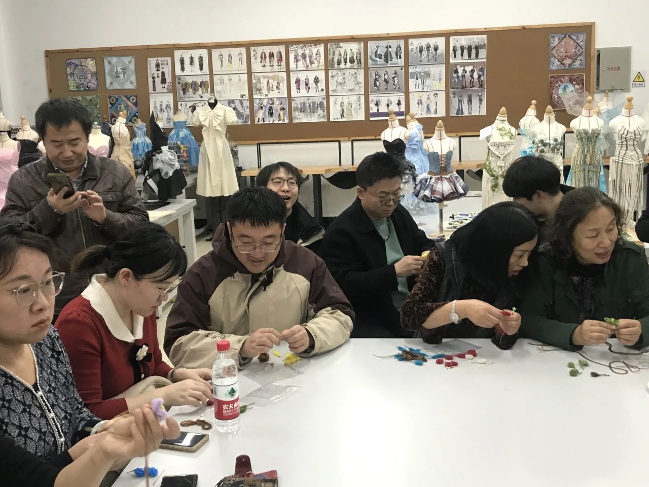 在活动现场,付琳贺老师详细讲述了绒花胸针的制作技艺和非物质文化遗产的深刻内涵。参与者们不仅沉浸于传统手工艺的学习之中,更在心灵深处与非遗文化产生了共鸣,对其有了更加深入的理解和认识。学院领导和老师们亲自动手,投入到绒花胸针的制作过程,享受着传统艺术带来的乐趣。