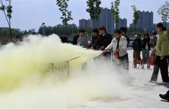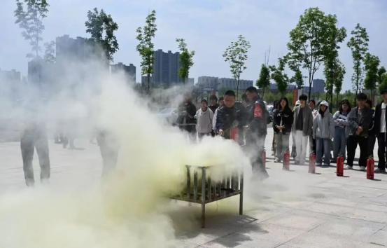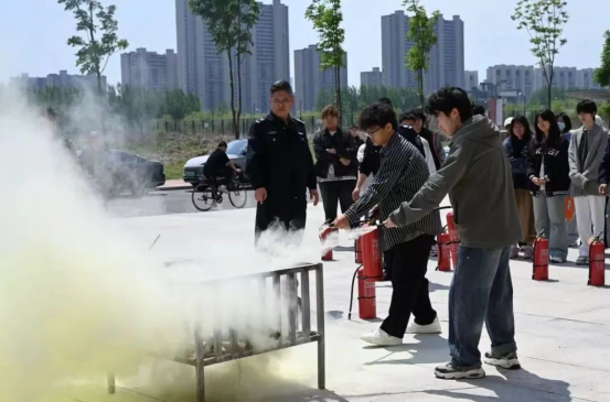 疏散完成后,安全处专业人员现场演示了灭火器、消防栓等消防器材的正确使用方法,并邀请师生亲自体验灭火操作,让大家在实践中掌握灭火技巧。安全处专业人员还针对校园火灾特点,详细讲解了火灾预防、报警要点、逃生自救等消防安全知识,以真实案例敲响消防安全警钟,加深师生对火灾危害的认识。