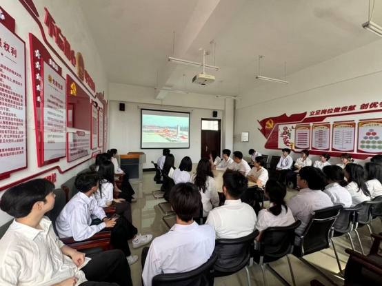 师生们通过屏幕共同观看了这场盛大阅兵。当阅兵式的画面展开,同学们的目光便被牢牢吸引。看到护旗梯队护卫旗帜坚定前行,大家仿佛感受到了革命先辈们的热血与忠诚;徒步方队整齐划一的步伐、昂扬向上的姿态,让同学们心中涌起强烈的自豪感;装备方队中先进武器装备的亮相,更是让大家惊叹于祖国军事力量的强大。而战旗方队那一面面承载着历史荣光的旗帜,仿佛在诉说着往昔的战火纷飞,让同学们深刻体会到如今和平的来之不易。整个观看过程中,同学们神情专注,不时爆发出阵阵掌声,为祖国的强大而欢呼,为身为中国人而自豪。