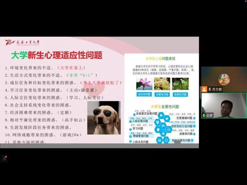 于9月9日通过腾讯会议方式开展2022级新生心理健康教育专题讲座。本次讲座由学校心理健康与咨询中心赵君老师主讲,学院全体2022级研究生和本科生参加。