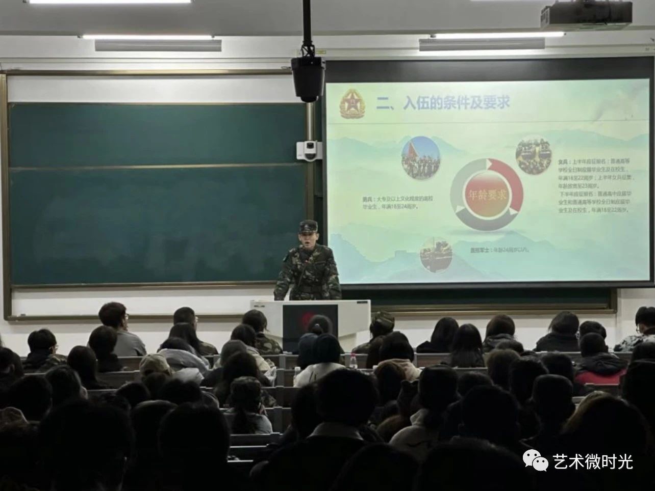 于10月25日在艺术楼一楼111阶梯教室举行2023级新生征兵政策宣讲会,动员广大青年学生响应祖国号召,积极投身国防建设。学院2022级退伍大学生孟庆安,2020级退伍大学生甘嘉华担任主讲人,学院全体2023级新生参加此次宣讲会。