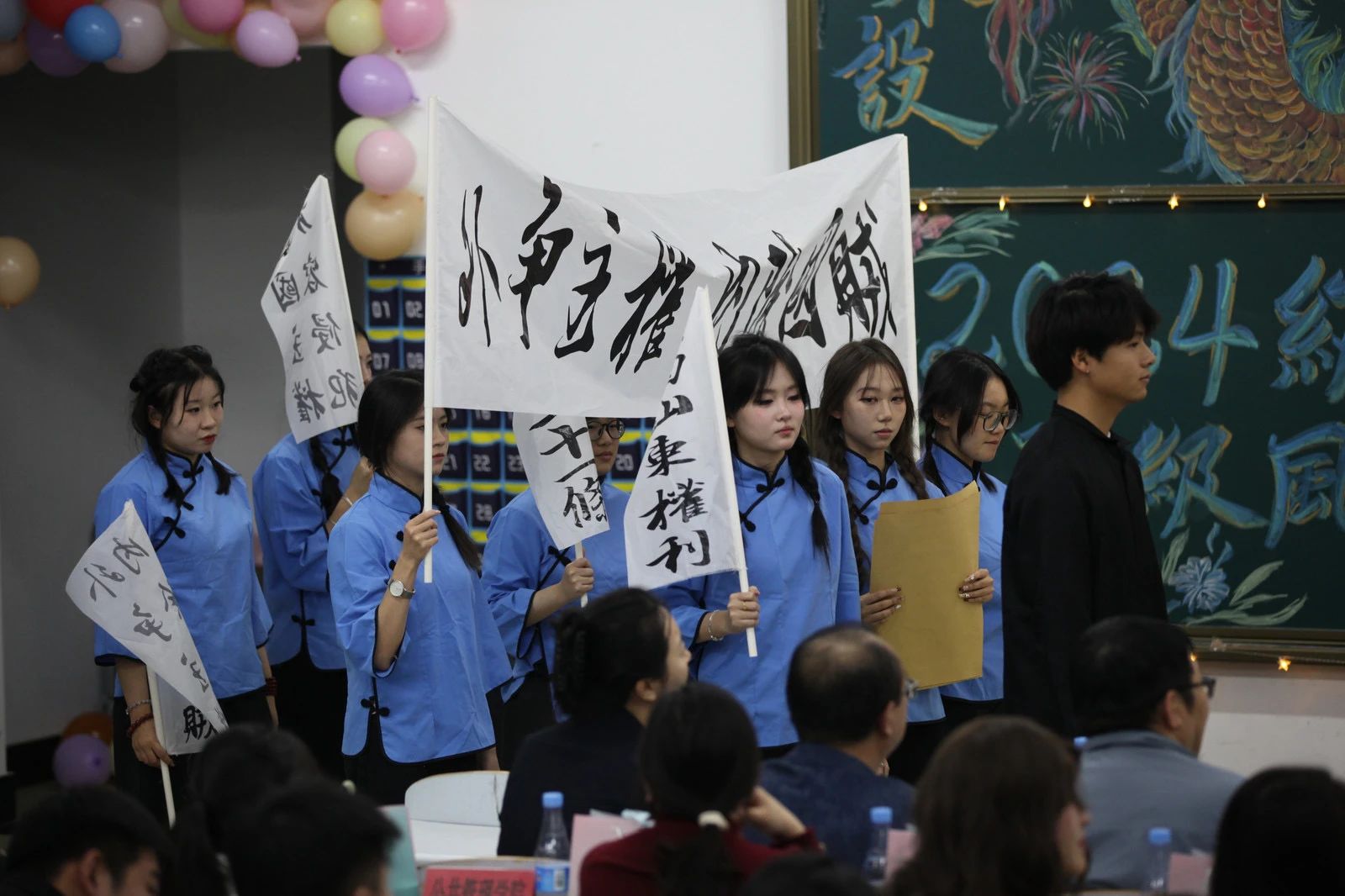 班集体团结、奋进、乐观、进取的良好形象,营造积极向上的班级学风,彰显班级生活的丰富多彩。学院于12月11日成功举办班级风采大赛。学院党委书记曹永利、院长葛英颖、党委副书记楚玉彪、专职组织员董广通、学生党支部书记于丰硕、研究生党支部书记尚彤出席比赛,学院2024级全体学生参加比赛。