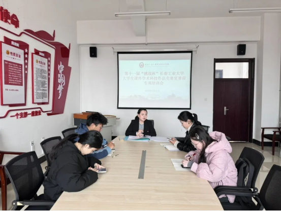 大学生课外学术科技作品竞赛复赛前专项培训会。本次会议由学院团委书记侯天放主持,各参赛项目负责人积极参会。