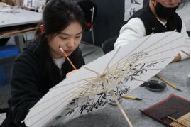 当丙烯颜料在绢布伞面上轻盈游走,沉睡的传统文化符号在青春笔触下渐次苏醒。有的或晕染江南烟雨追思先人,或融入数字技术呈现白菊,更有联动伞群在旋转中再现山水画卷,让传统非遗焕发新活力。