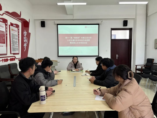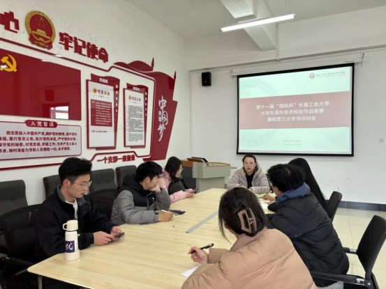 大学生课外学术科技作品竞赛赛前第三次专项培训会。会议由学院团委书记侯天放主持,全院各参赛项目负责人及团队成员参加。