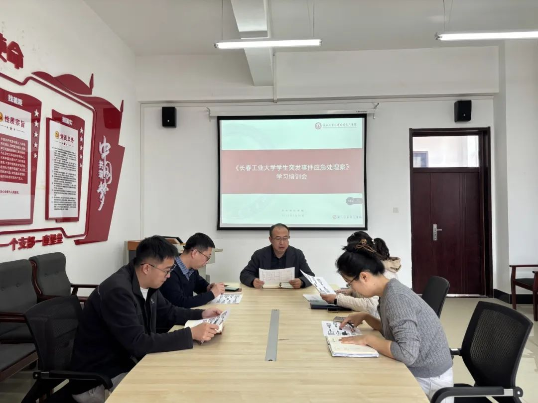 学生突发事件应急处理预案》专题学习培训会,会议由学院党委副书记楚玉彪主持,全体辅导员参会。本次培训旨在强化责任意识、明确处置流程,确保在突发事件发生时能够快速响应、科学应对,全力守护学生安全与校园和谐。