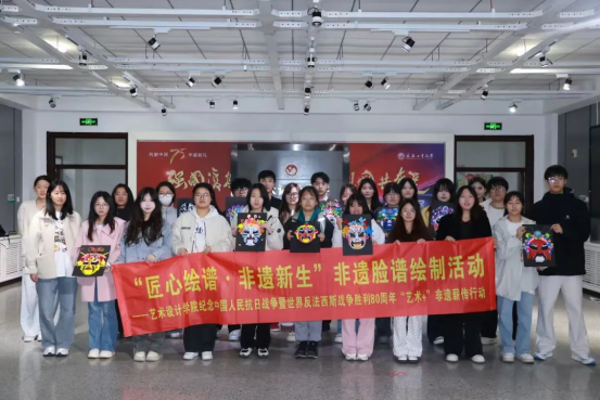 以纪念中国人民抗日战争暨世界反法西斯战争胜利80周年为契机,成功举办“艺术+”非遗薪传行动之“匠心绘谱·非遗新生”脸谱绘制活动。师生们以传统非遗技艺为载体,将红色记忆与艺术创新相融合,用画笔传承民族精神。