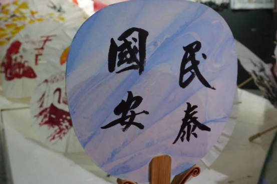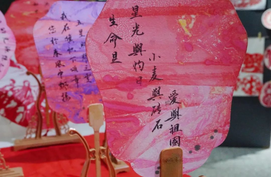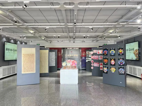 在艺术楼一楼大厅举办“绘梦青春,艺韵华章”五四主题“艺术+”非遗作品展,以油纸伞、漆扇、脸谱、剪纸、书画五大非遗载体,构筑起传统技艺与红色文化交融的思政育人新阵地。