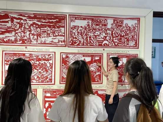 以“剪纸展专题讲解”的形式,组织青年团员重温历史、缅怀先烈。