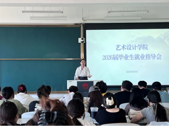 会议伊始,侯天放老师对当前就业市场及艺术设计行业发展趋势作出深入剖析,引导同学们树立科学合理的就业观与择业观,并鼓励大家立足专业特长,积极拓展就业渠道,牢牢把握“金九银十”秋季招聘黄金期。她还特别强调,要明确考研目标,统筹规划升学与就业,理性选择发展方向。