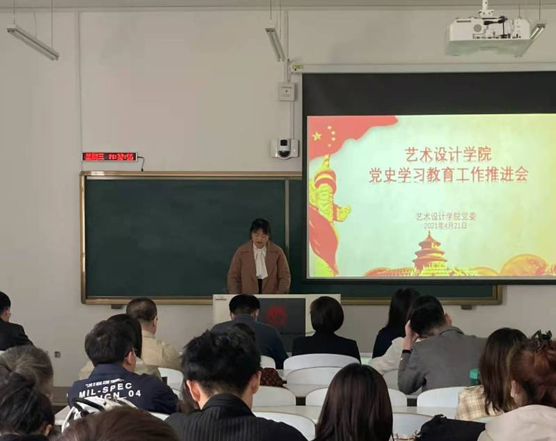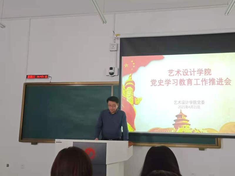 4月21日下午,学院在艺术楼412教室召开党史学习教育工作推进会,就近期学院党史学习教育工作进行安排部署。学院党史学习教育学习领导小组成员和全院教师、本研学生党员共同参加了会议。会议由学院专职组织员董广通主持。